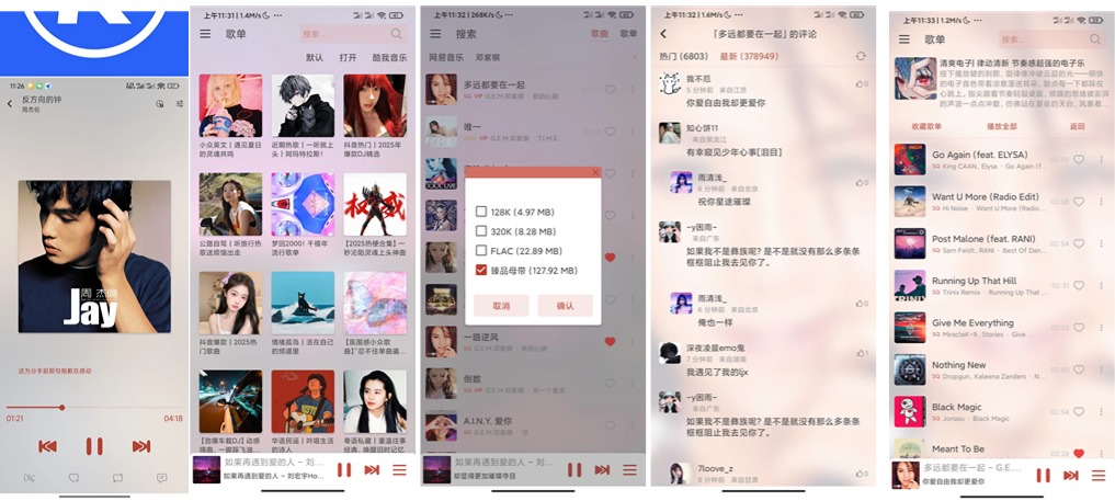 1. 提供普通、高品质、无损APE、无损FLAC, 👍 臻品母带 👍 等多种音质