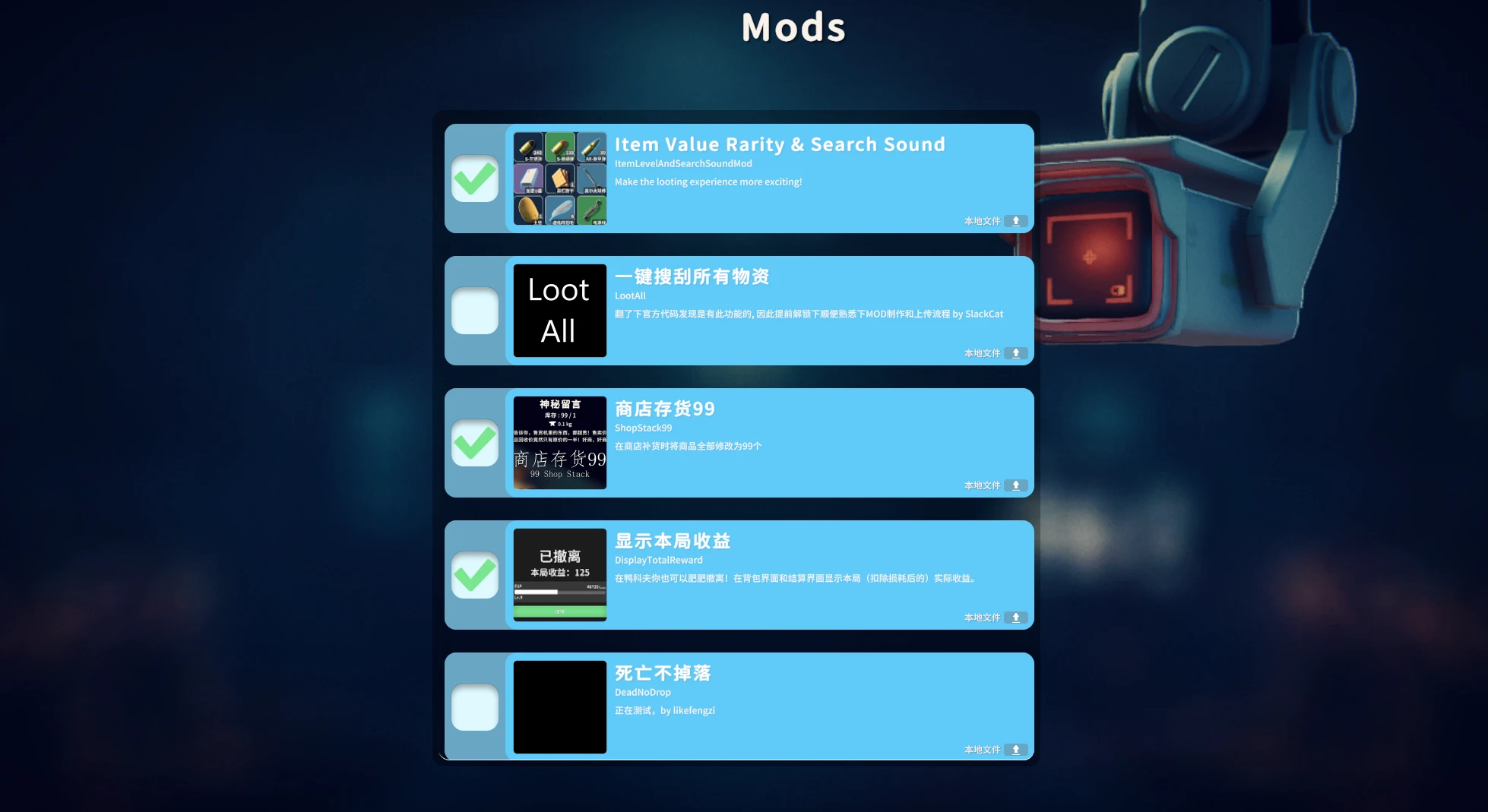 4、重新启动游戏,在主界面选择「Mods」选项,勾选需要启用的 MOD 即可生效。